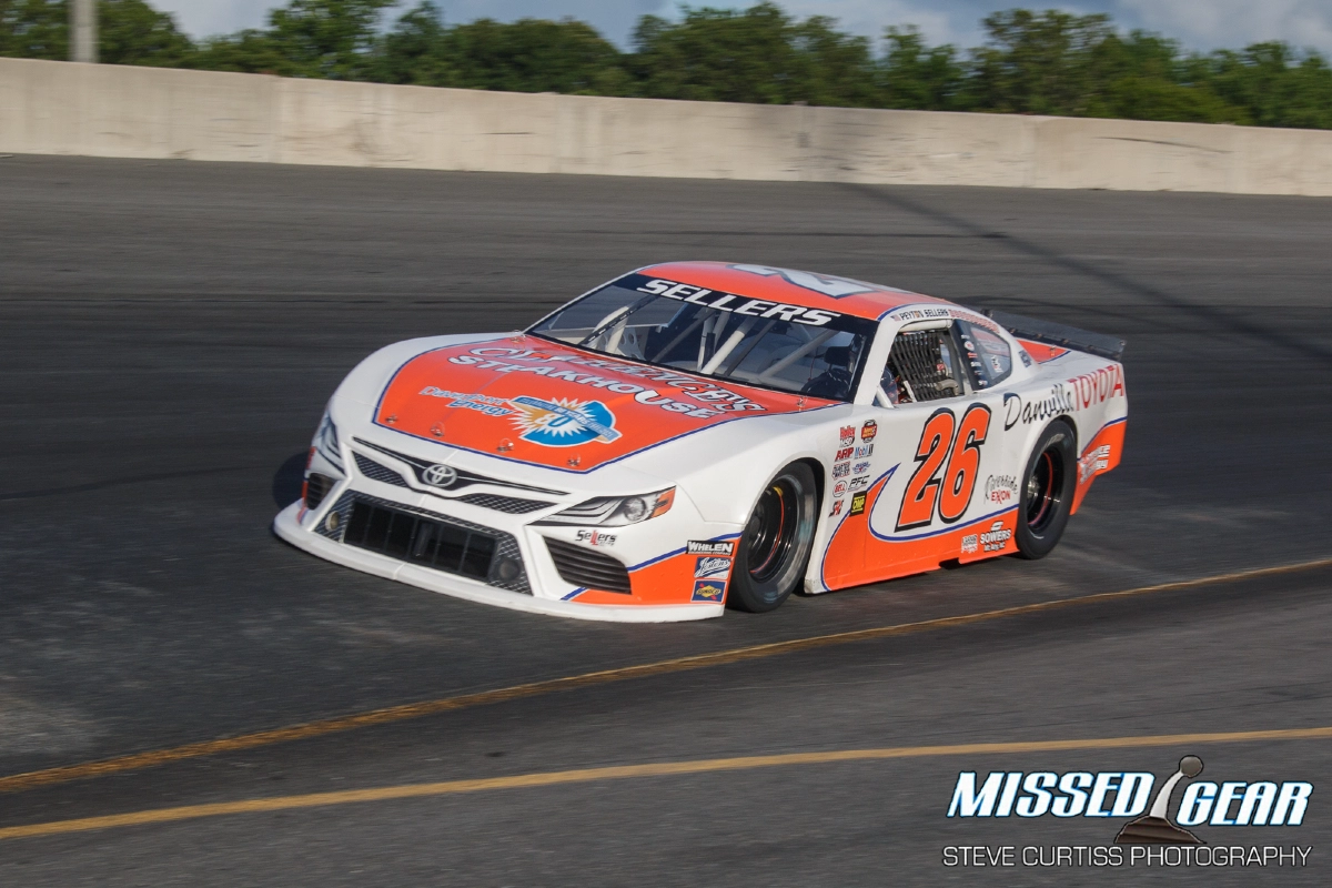 For the racing, the Saturday evening Community Bank Night at the Races of June 26 brought a good show. The NAAPWS Late Models were first off the checkers for race 1 of 2 60 lap runs with a 17 car field. There was a bit of a surprise to see Peyton Sellers with his Clarence’s Steak House / Danville Toyota #26 on the grid and on the pole. Sellers was a bit north of his usual place of business at South Boston. He put the field behind him for the win in race 1 and came up from mid-pack in race 2 later in the night to sweep the Late Models.