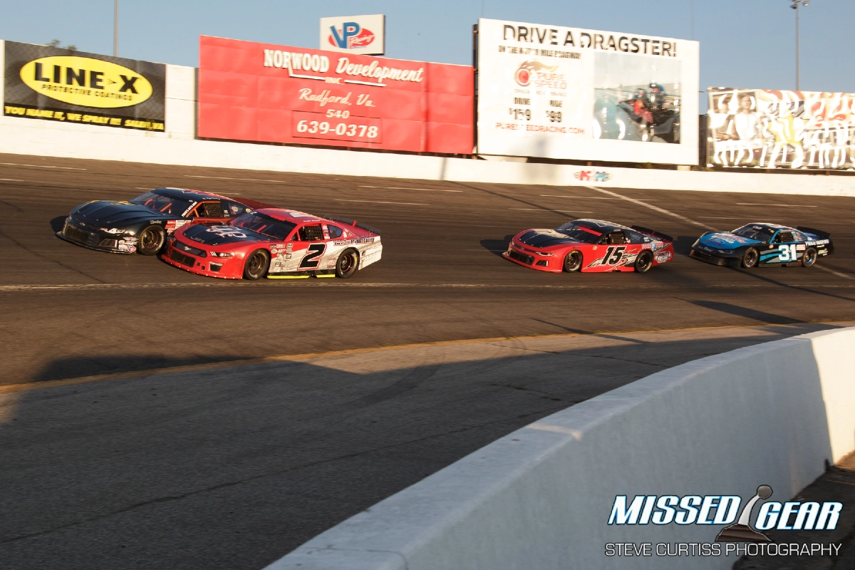 The largest field of cars on the track was the Sportsman division with crowded competition from green to checkers. The first of the twin-30 Collision Plus Sportsman was won by Corey Dunn. The second was taken by Kyle Barnes but it was Corey Dunn who came away as Sportsman Champion at Motor Mile.