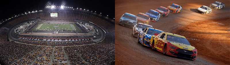 It’s only fair… College football with Tennessee and VA Tech played out at Bristol in 2016. Now, we have NASCAR running inside the LA Coliseum. Granted, the coliseum is marketed as a “multi-use” facility but it is built primarily around a football platform in scale and design. There is also, on any given normal day, no asphalt to speak of inside the coliseum. NASCAR spent over a million dollars to “pave” a 1/4 mile track within the coliseum space in order to run the “Busch Light Clash”.
