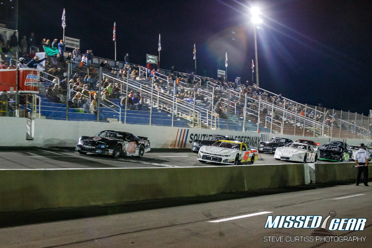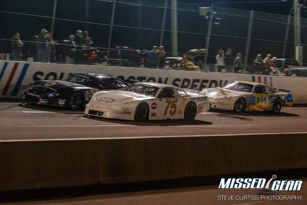 These things run hot and fast. They average 3 seconds per lap faster than the late models that run at SoBo. The races are short at 30 laps. Drivers are on edge constantly as they are so light and fast they want to slide and you can see them working the steering wheel constantly. The potential for danger was addressed by the staff and officials by closing off some areas usually open to fans.